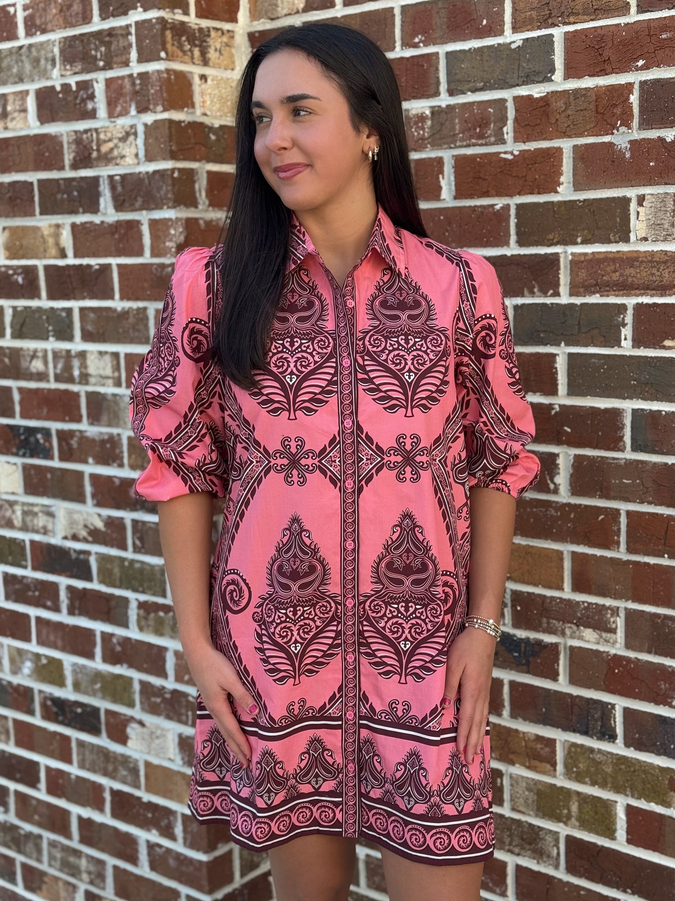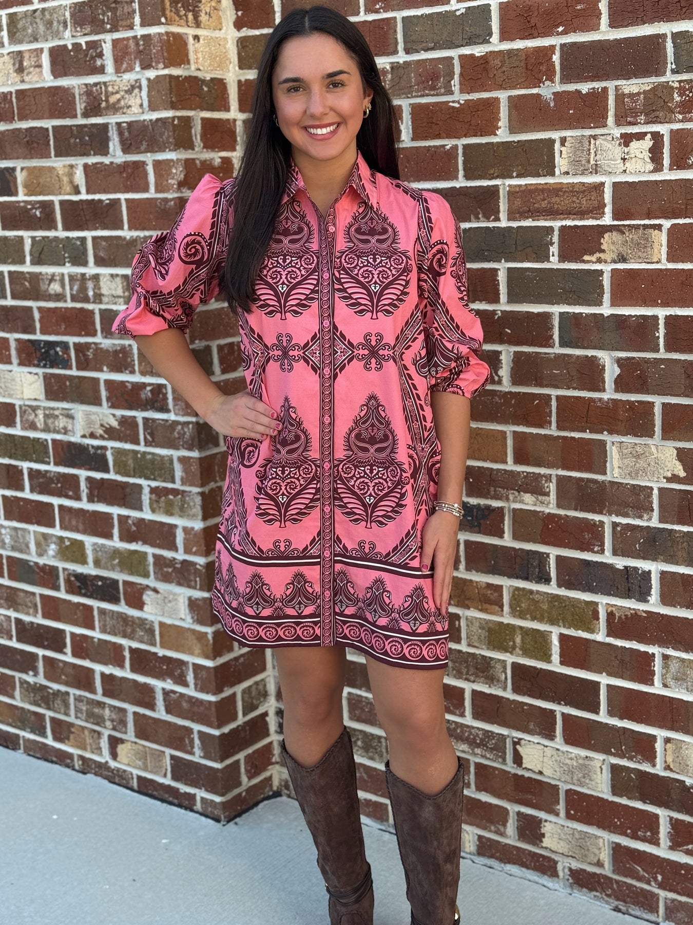 Splash into fun with the Ava Collared Mosaic Dress! Bursting with bright colors and a lively intricate pattern, this dress adds a cheerful twist to your wardrobe. Its playful midi length keeps things flirty and fresh, making it perfect for sunny days or spirited gatherings.