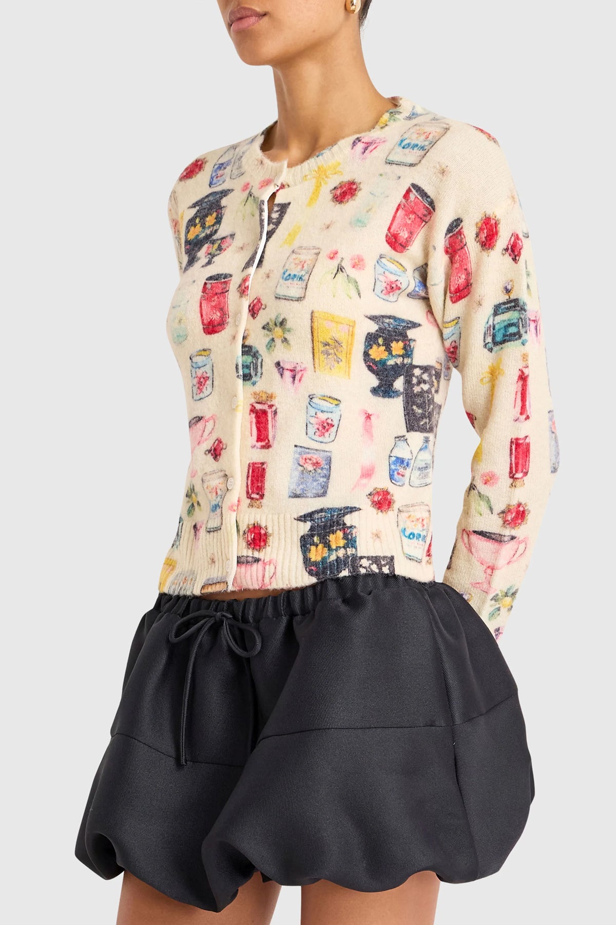 Stay sweet in the Nancy Cardigan. This cozy knit with a fun, vintage-inspired Treasure Print pattern adds charm to any outfit. Wear it with your favorite light-wash jeans—perfect for weekend plans.