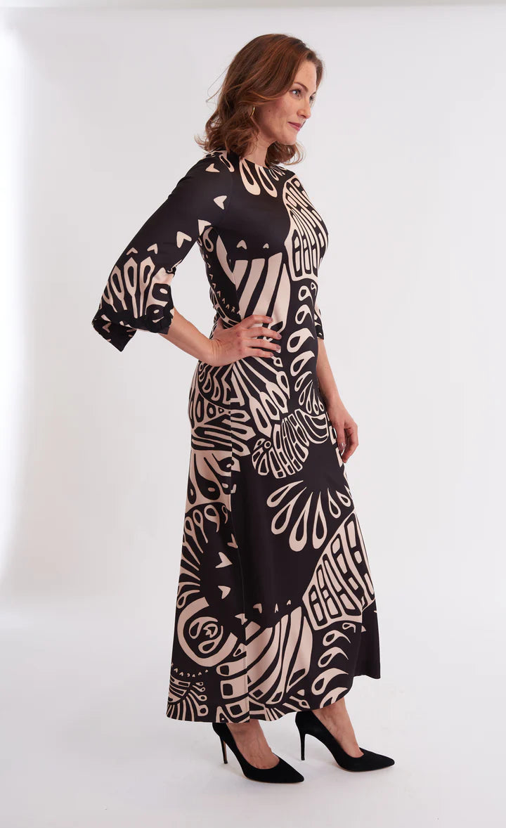 Elevate your wardrobe with the Arianne Dress in Paddle Sienna. This simple, classic silhouette is enhanced by a lively, fun print, making it an ideal choice for your next event. Its timeless design ensures versatility, while the vibrant pattern adds a fresh, stylish touch that stands out effortlessly. Perfectly balancing elegance and playful charm, this dress is a sophisticated addition for any occasion.