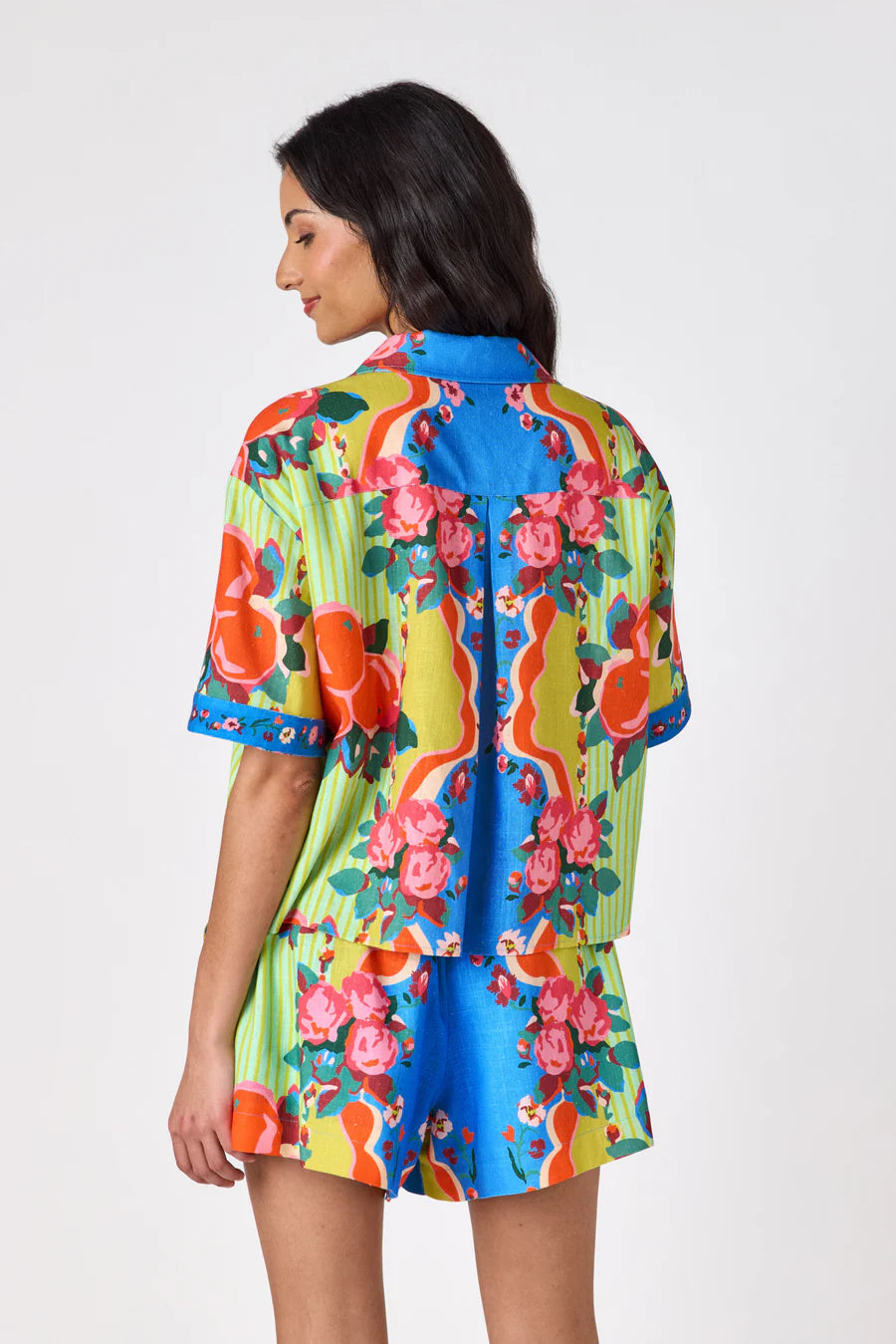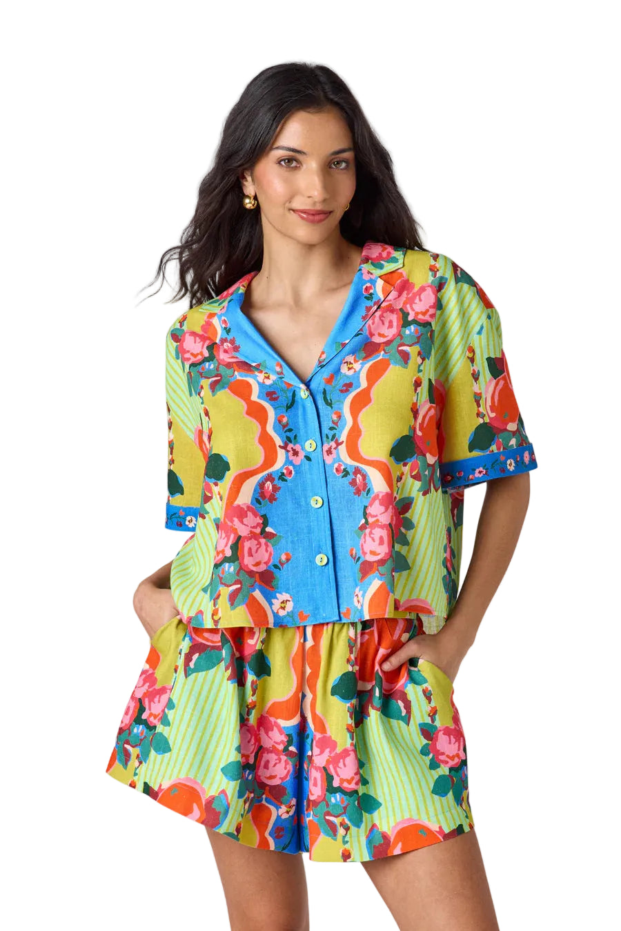 The Schaeffer Dress in Garden Colorblock by Crosby is a bold, artful statement piece designed to bring color and confidence to your wardrobe. Featuring a striking combination of pink, citron, and soft pastel hues, this midi dress creates a sculpted silhouette with its thoughtfully placed colorblocking.