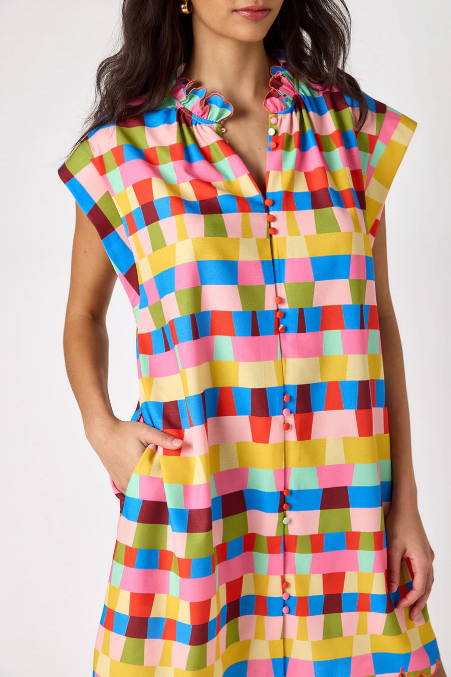 The sleeveless design and easy, column-like shape offer a modern yet effortless feel, while the vibrant palette makes it perfect for everything from vacation dinners to daytime events. Equal parts polished and playful, the Schaeffer Dress is made for standing out in the best way.