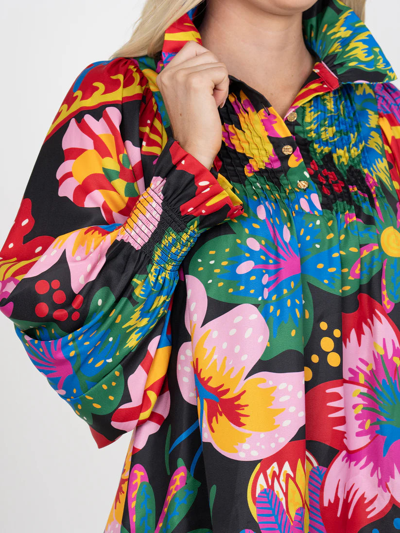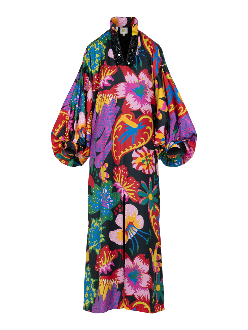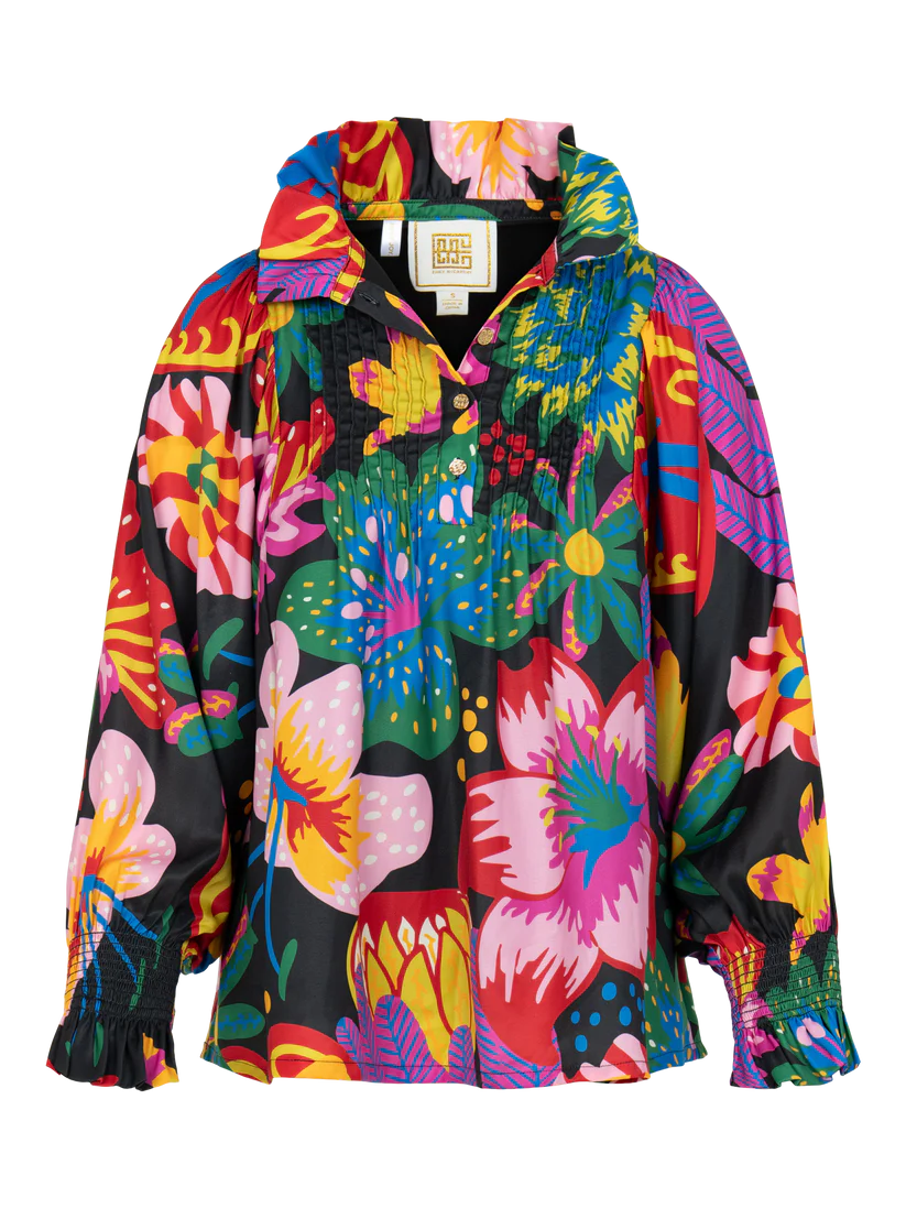 The Lolli Sweater in Lone Star showcases a stand collar with a notched neckline, blouson sleeves finished with ribbed cuffs, and a slightly tailored silhouette for an effortless fit. Knit directly into the fabric, the embroidered Lone Star icons bring depth, texture, and western-inspired flair, from cowboy boots and longhorns to horseshoes and bluebonnets. Bold bands of patterning across the sleeves add contrast and visual interest, while the soft knit construction makes it a cozy yet statement-making piece of chic western wear.