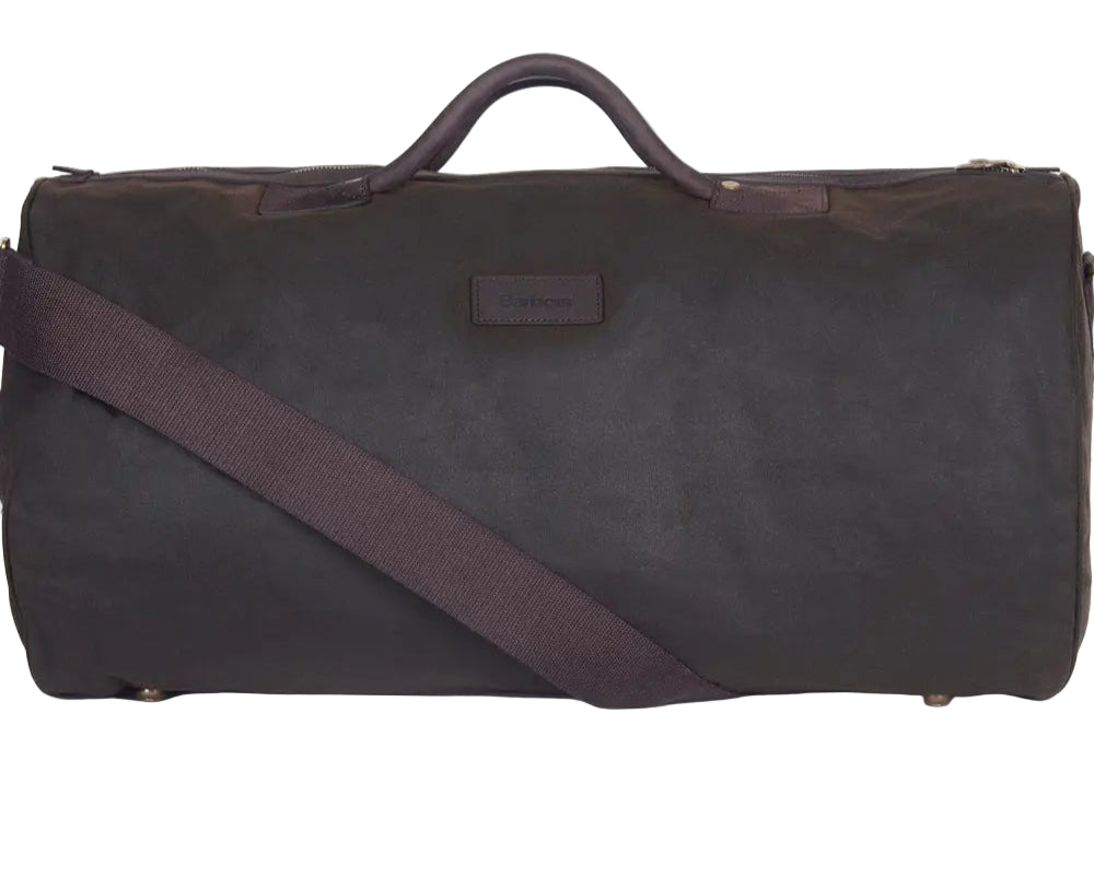 Spacious and versatile, the Wax Holdall is constructed in Barbour's robust waxed cotton with stylish leather trims. The perfect size for overnight stays, this essential bag features two strong carry handles and a detachable webbing shoulder strap. Antique brass fittings and a cotton lining in Barbour's Classic Tartan create a heritage look, and two zipped inner pockets safeguard valuables while on the move. Finished with an embossed Barbour badge to the outer.