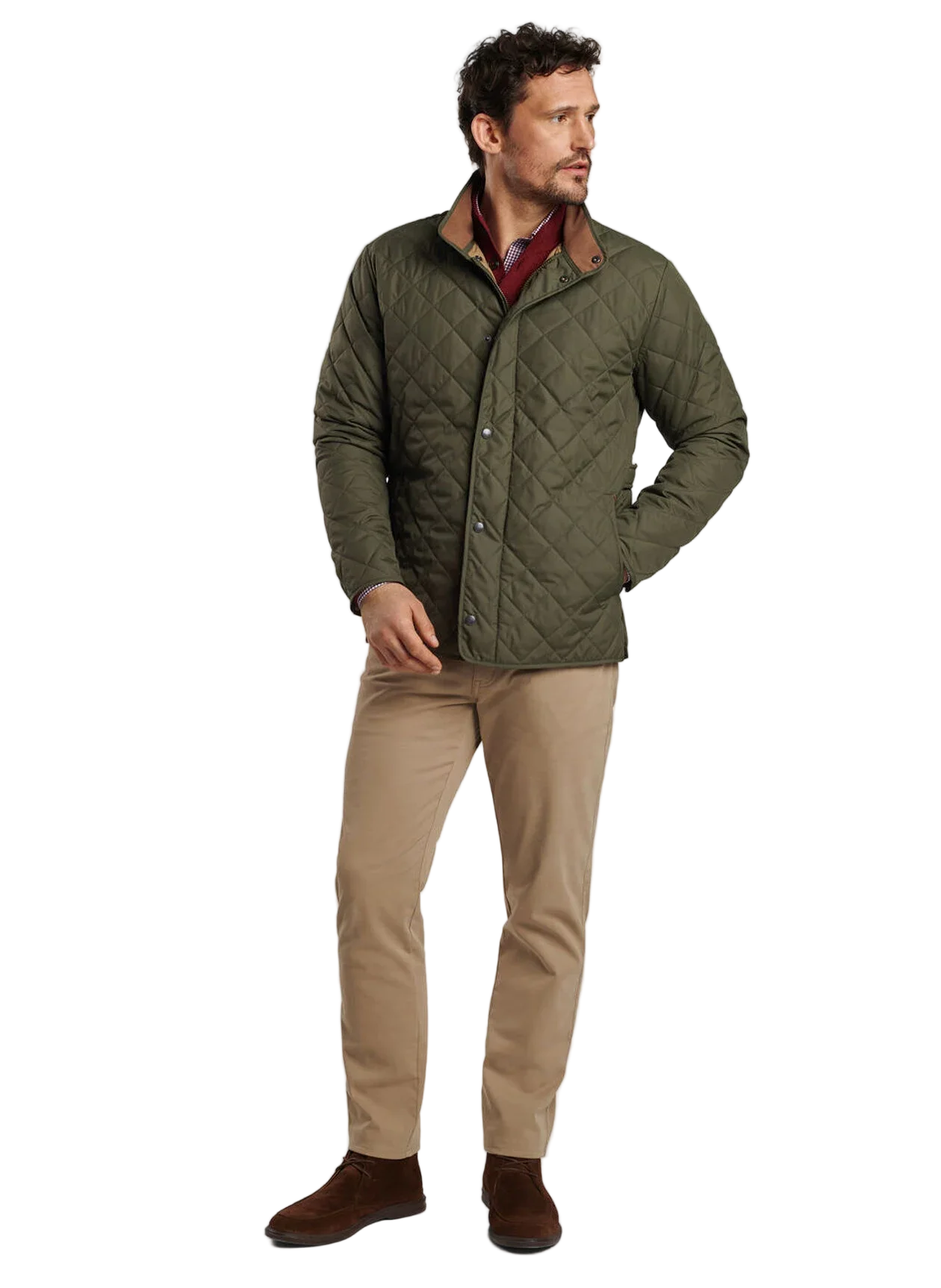 The Barbour Shoveler Quilted Jacket is cut for a traditional relaxed fit with the signature diamond-quilted outer, needlecord inner collar and a contrast lining. Studded flap pockets and an additional zipped pocket add extra practicality.