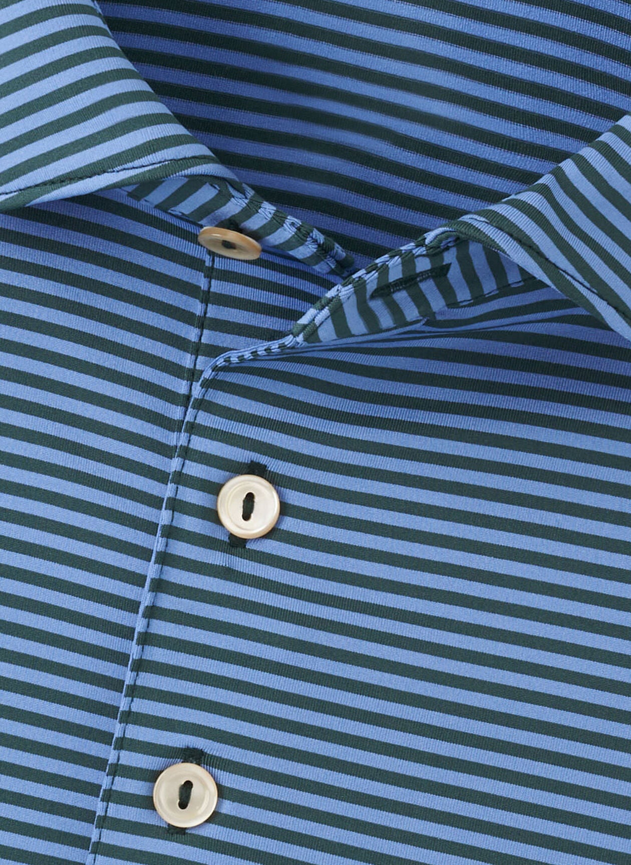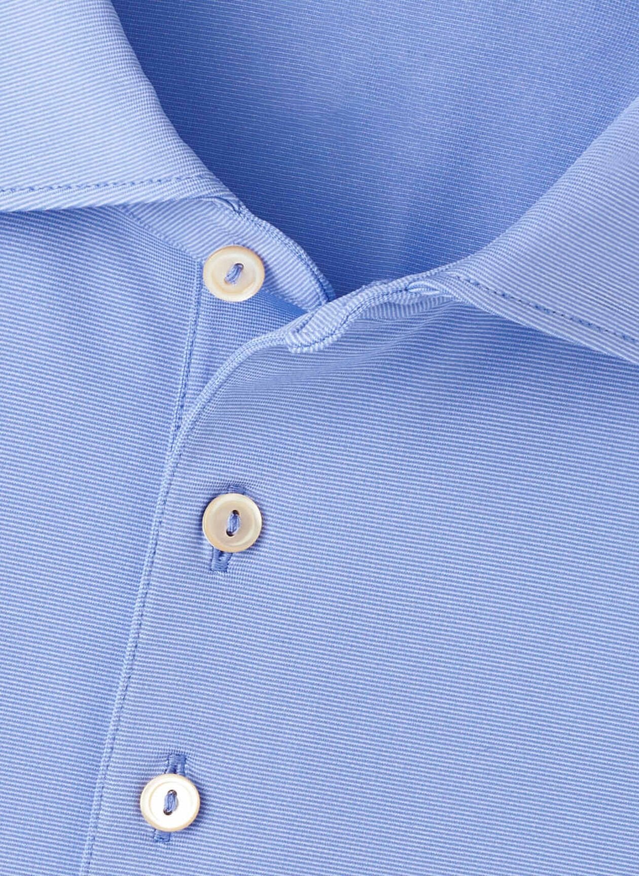 Clean style, exceptional comfort, and next-level stretch and softness. Our Crown Crafted jersey polos bring a soft, plush feel with wicking, four-way stretch, easy-care and UPF 50+ sun protection. Finished with a spread collar and detailed with mother-of-pearl buttons.