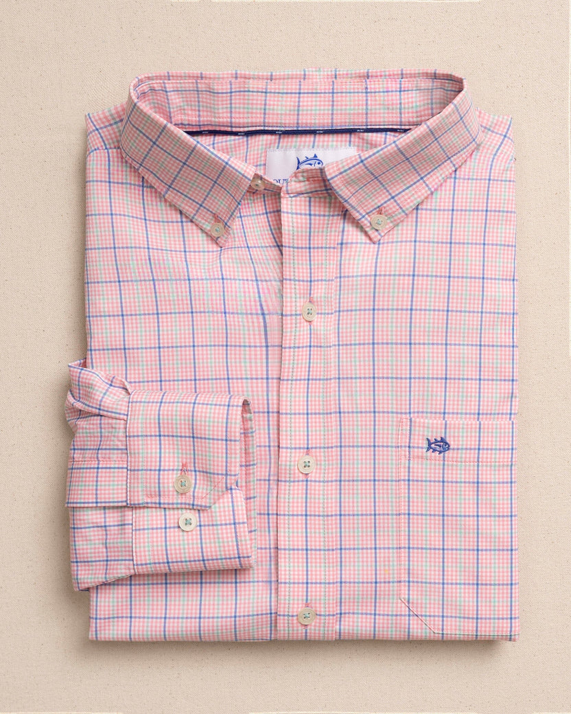 Lightweight, quick-drying, and made to keep you cool, the Crofton Plaid Charleston Long Sleeve Sport Shirt blends performance with classic Southern style. Crafted from wicking fabric with built-in cooling technology, it’s designed to move effortlessly from dockside afternoons to dinner downtown. A refined plaid pattern, hidden button-down collar, and adjustable cuffs create a polished look that’s comfortable in every season.