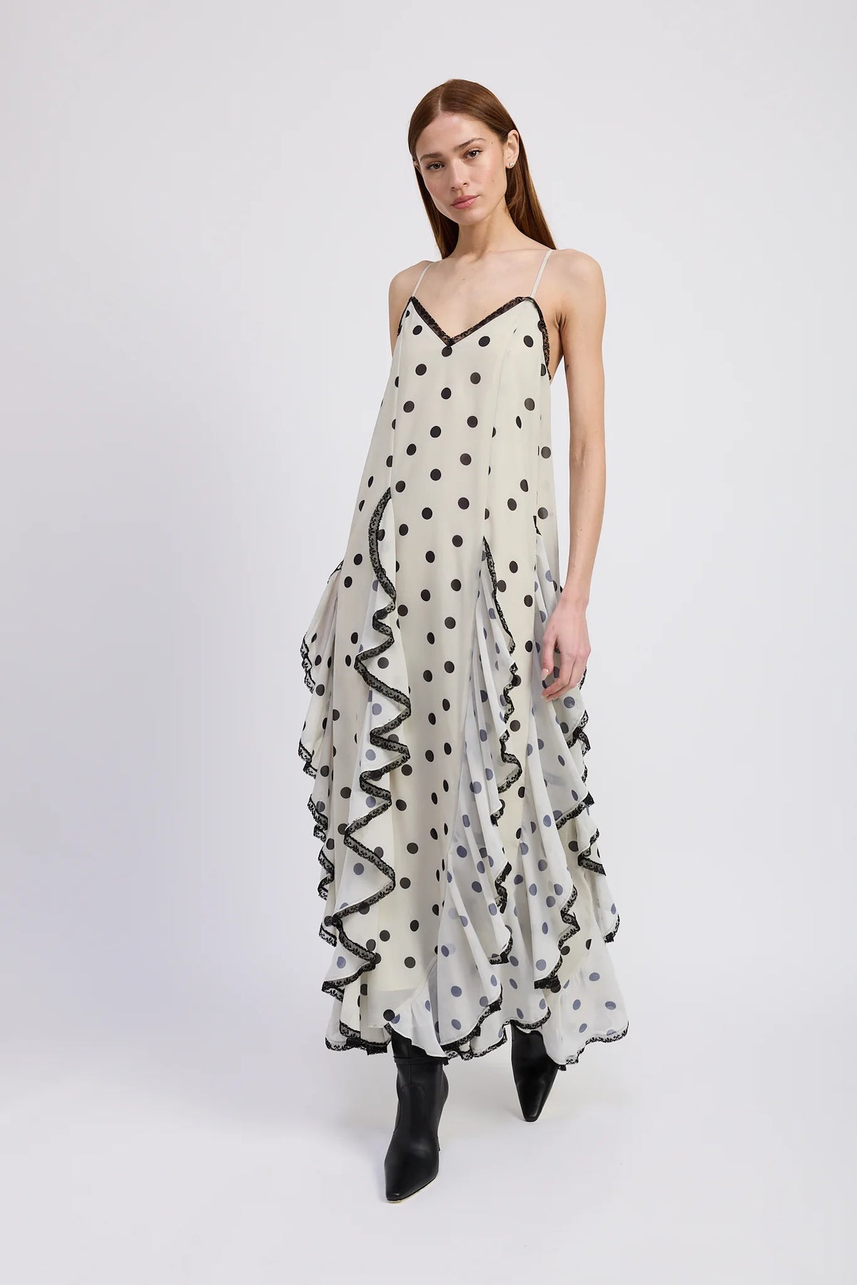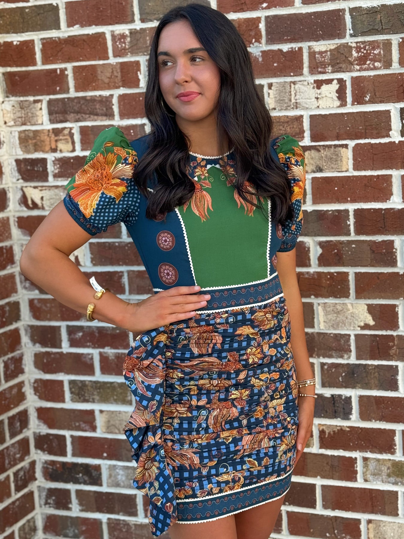 Your new fall occasion dress has arrived in all of Quinby's tiered, flounced, and floral splendor. Airy silk mix meets bloom, our painterly fall scorchd botanical print that will be the star of every party. The flattering effect of the fitted top that cascades into a ruffled skirt is both comfortable and effortlessly versatile, taking you from baby to bridal shower or an elevated date night.