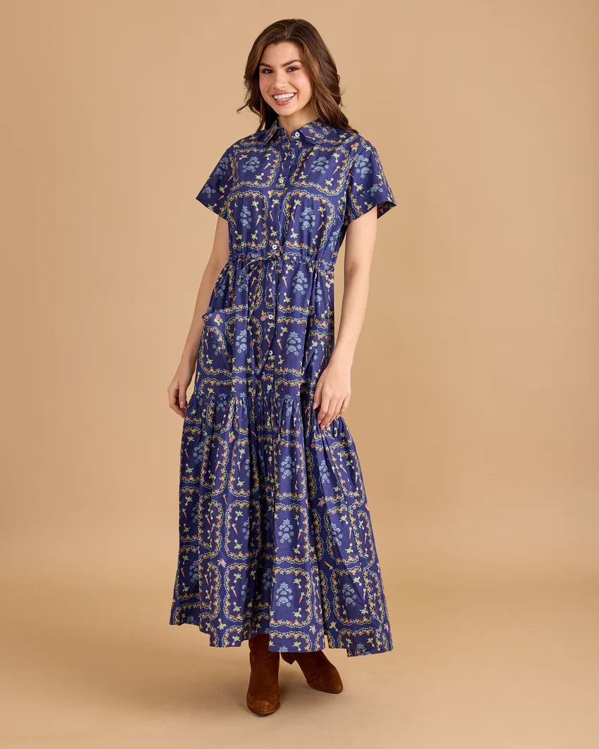 The Lucie dress in Harvest Patch is the best dress for this transitional period! The denim blue color will go with everything and perfect to take into early fall!
