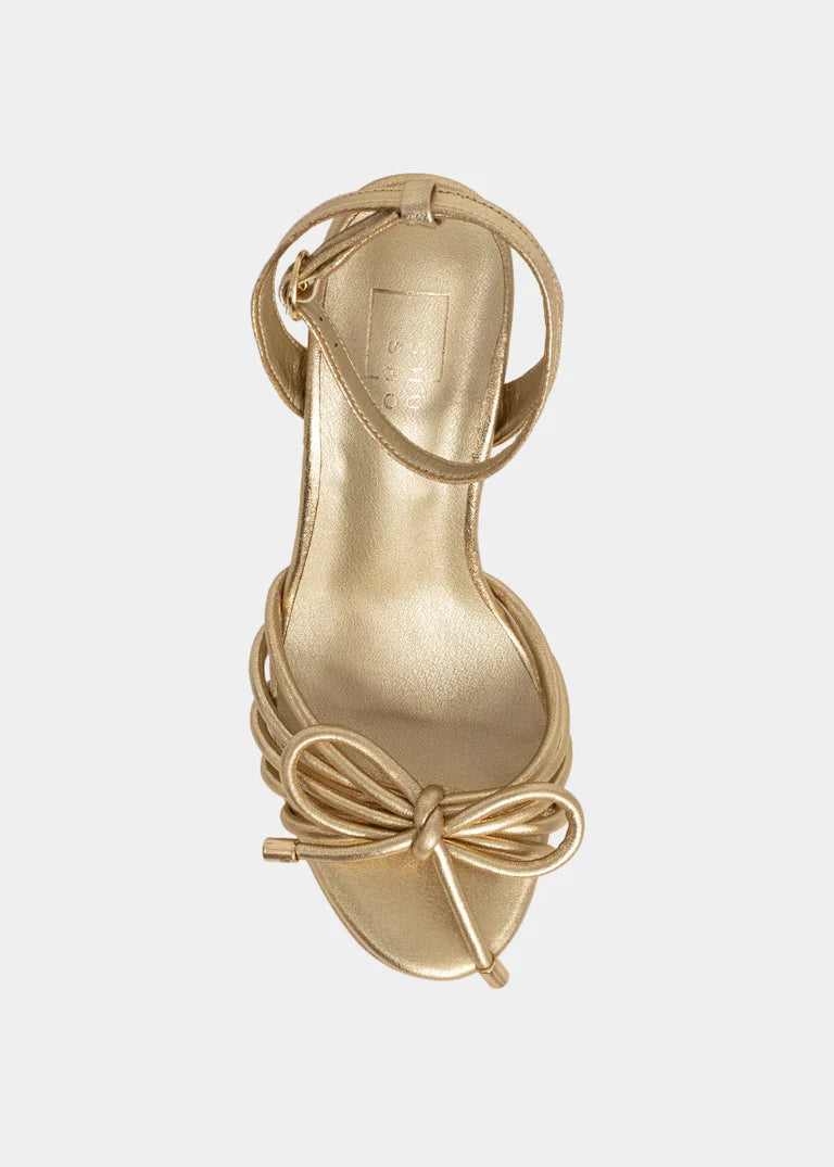 Your golden-hour go-to. The EDITH in Gold brings radiant shine and modern edge to a retro-inspired silhouette. With glimmering faux metallic leather, a knotted strap design, and a bold block heel, this platform sandal was made for making an entrance. From weddings to weekend parties, this heel is the sparkle your outfit’s been waiting for. Shine bright, walk tall.