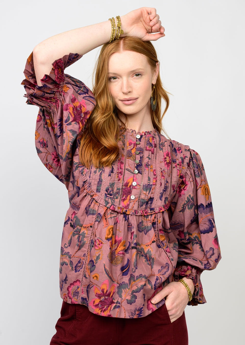A little sport, a little spice, and a whole lot of style. The Long Sleeve Poppy in Cherry Spice combines comfort and confidence with its signature stand collar, elastic dolman sleeves, and easy, relaxed silhouette. Crafted in our luxe loom fabric, it moves with you—perfect for coffee runs, busy travel days, or laid-back weekends. The warm caramel base with bold cherry red accents brings a playful punch to your wardrobe, especially when paired with the matching Joy Jogger for a polished two-piece set that’s as effortless as it is elevated.