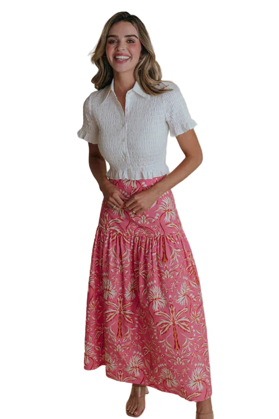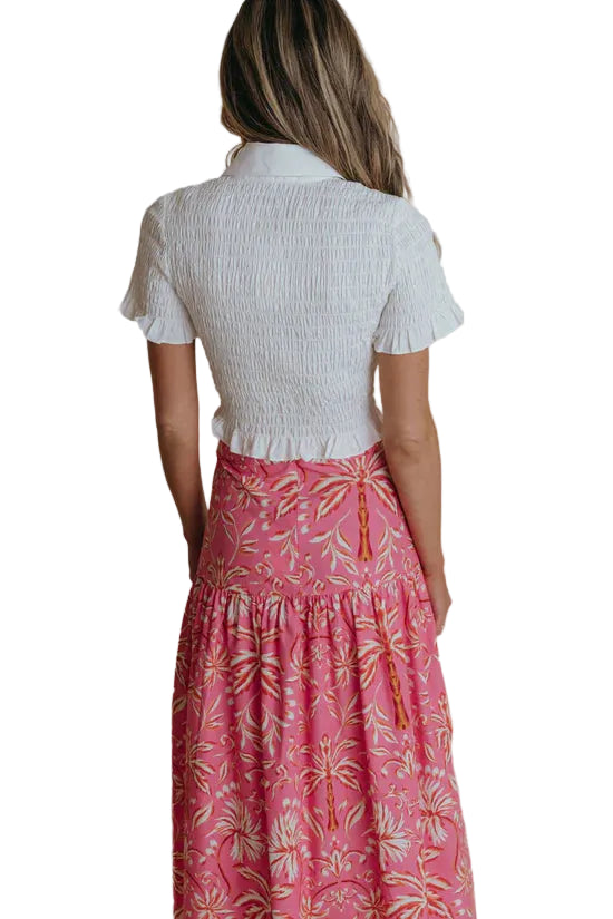 Shown in Bonecotton poplinsmocked detailingcuffed sleeve with covered buttons