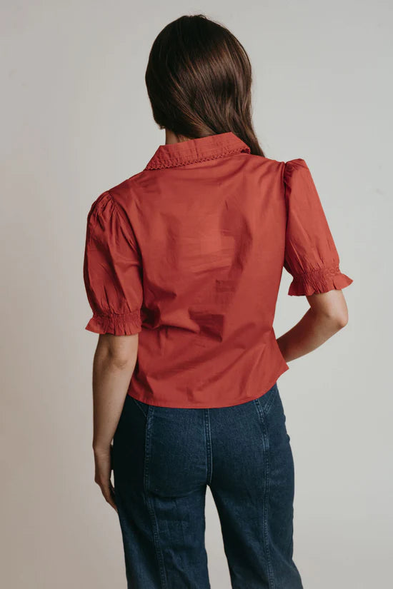 shown in Lily cotton poplinsleeve with elastic cuffopen neckline