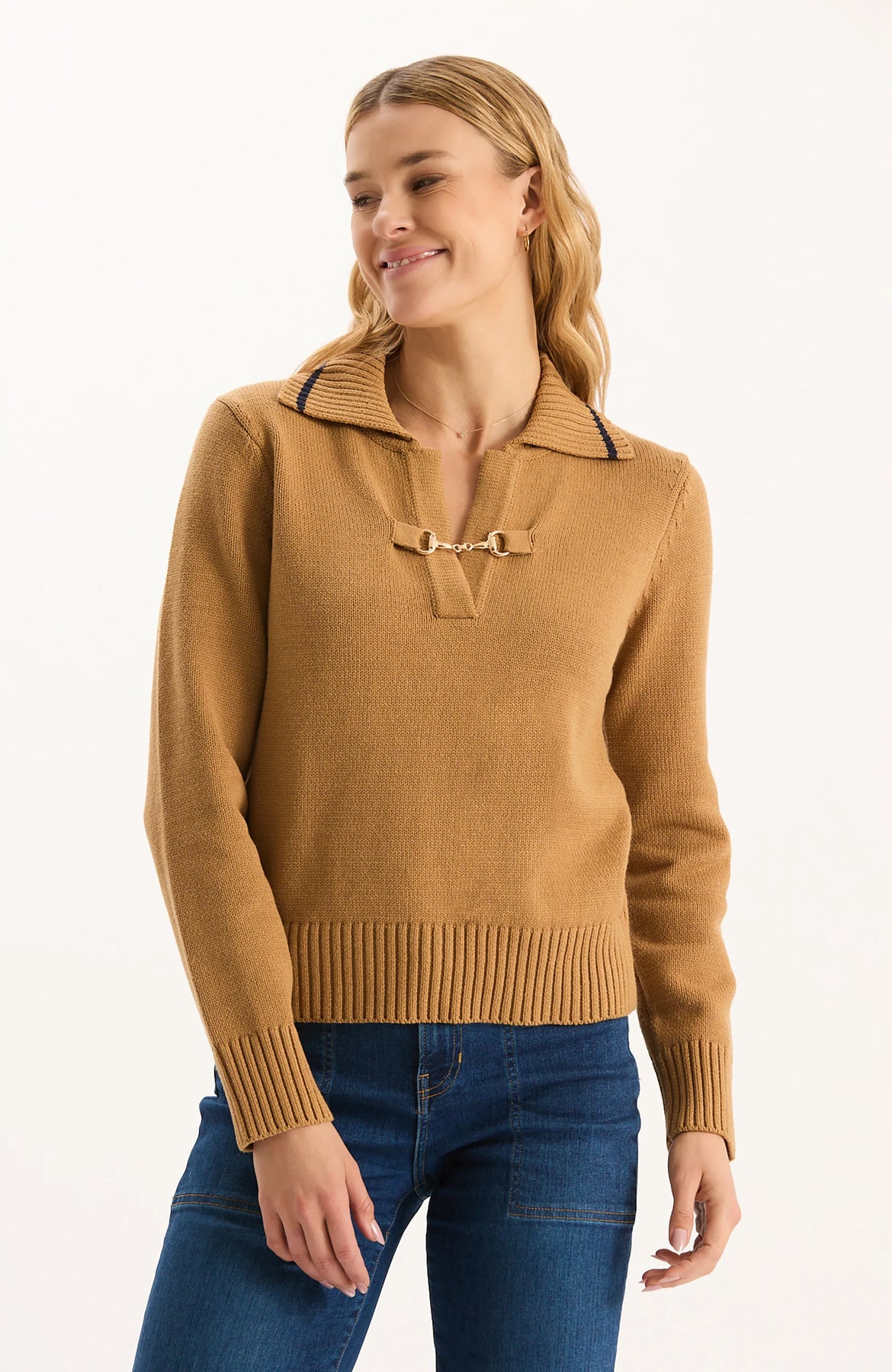 Equestian chic in our favorite new knit. A classic with modern details—it features a collared v-neckline, ribbed cuffs and hem, and bit closure detail. Elegant and timeless, this piece is an essential for your fall wardrobe and beyond.